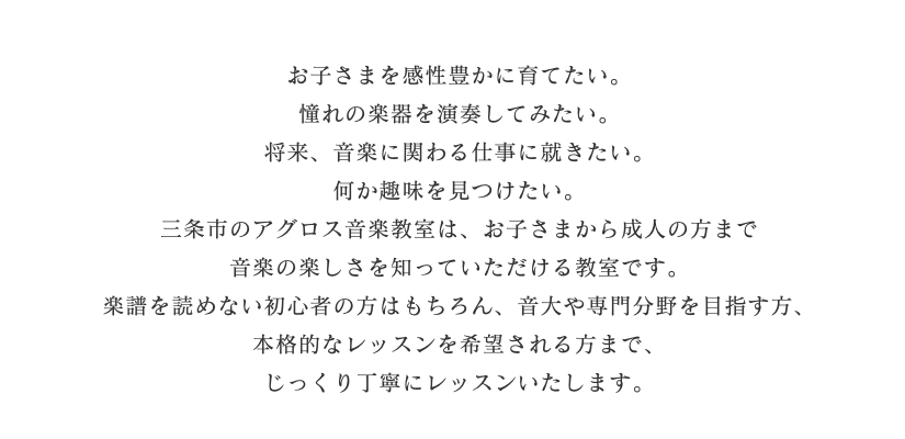 ただいまアグロス音楽教室では、新規入会部集中です。 無料体験レッスン、見学などお気軽にお問い合わせください。